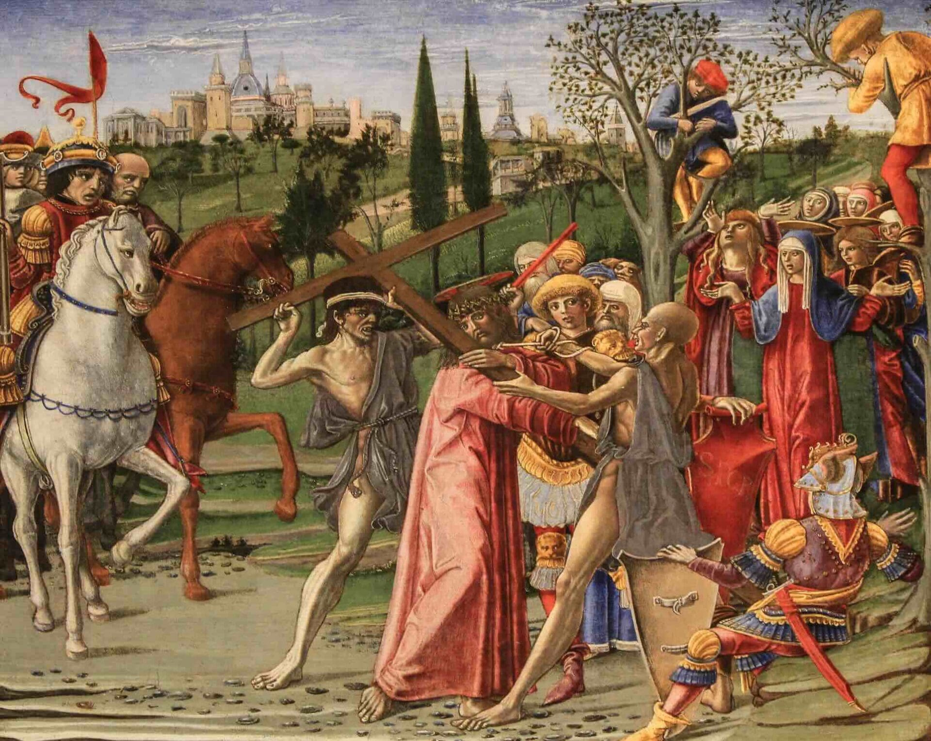 Yet Trinitarian love transcends the pain and stiffness of the cross. It pours forth onto the world in the form of blood and water from Christ’s body: “But when they came to Jesus and saw that he was already dead, they did not break his legs. But one of the soldiers pierced his side with a spear, and at once there came out blood and water” (Jn 19:33–34). From the rigid and painful wood flows Christ’s perfect act of charity—blood and water are the fruit which forever change man’s fate. Now, death is not the end. While we mourn on Good Friday, we know that Christ’s death is the means to victory over sin and punishment.